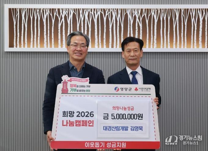 [경기뉴스원/경기뉴스1] | 대경산림개발 대표 김영묵(전 농업경제건설국장)은 1월 21일 영양군을 방문해 지역의 어려운 이웃과 희망을 나누고자 성금 500만원을 기부하며 '희망2026나눔캠페인'에 동참했다.