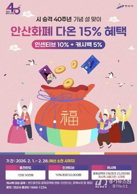 [경기뉴스원/경기뉴스1] | 안산시는 시 승격 40주년을 기념하고 시민들의 설 명절 부담을 덜어주고자 지역화폐 ‘다온’의 소비 혜택을 강화한다고 30일 밝혔다.