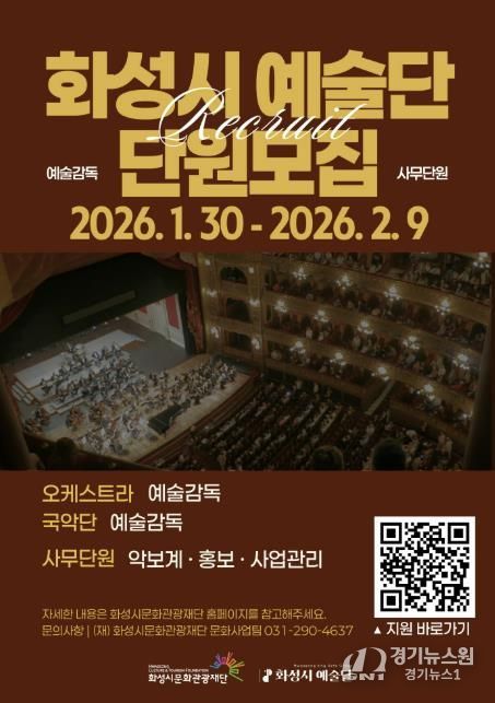 [경기뉴스원/경기뉴스1] | (재)화성시문화관광재단은 2026년 ‘화성시 예술단’을 이끌어갈 예술감독과 사무단원을 모집한다.