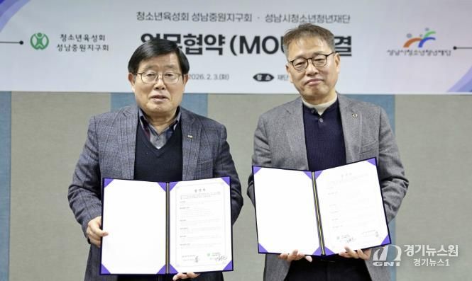 [경기뉴스원/경기뉴스1] | 성남시청소년청년재단은 2월 3일 청소년육성회 성남중원지구회와 지역 청소년의 건강한 성장과 복지 증진을 위한 업무협약을 체결했다.