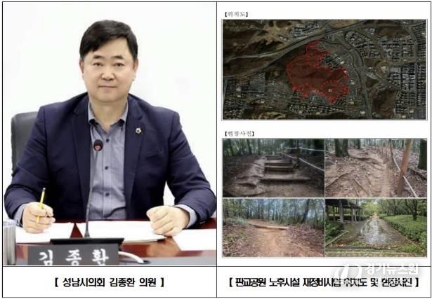 [경기뉴스원/경기뉴스1] | 성남시의회 국민의힘 김종환 의원(판교·백현·운중·대장동, 예산결산특별위원장)은 분당구 판교동 판교공원 일원 노후 산책로와 바닥포장 등을 정비하는 재정비공사가 본격 추진됨을 밝혔다.
