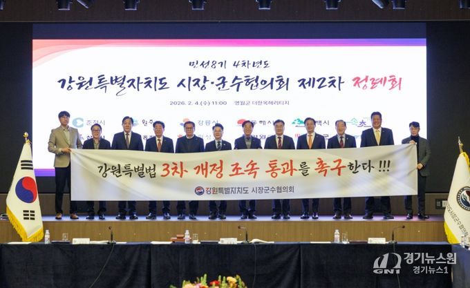 [경기뉴스원/경기뉴스1] | 강원특별자치도시장군수협의회는 2026년 2월 4일 오전 11시, 영월군 ‘더 한옥헤리티지 영빈관’에서 민선8기 4차년도 제2차 정례회를 개최하고 각 시·군의 주요 현안에 대하여 심의하고 대응책을 논의했다.