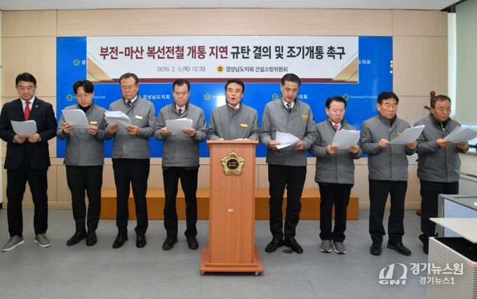 [경기뉴스원/경기뉴스1] | 경상남도의회 건설소방위원회는 5일 기자회견을 열고, 6년째 표류 중인 ‘부전~마산 복선전철’ 사업의 조속한 개통을 촉구하며 정부의 무책임한 행정을 강력히 규탄했다.