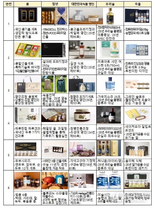 최근 적극적으로 판로 확대를 모색하고 있는 콩 가공제품을 구성해 농가와의 상생을 도모했고, 청년 농업인이 생산한 제품을 소개하여 활기차고 미래지향적인 농업․농촌의 비전을 제시했다. 아울러, 대한민국 식품명인의 노하우가 담긴 제품과 품평회 등을 통해 그 우수성을 인정받은 우리술을 엄선하여 명절 선물의 품격과 신뢰도를 높였다.