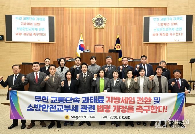 [경기뉴스원/경기뉴스1] | 세종특별자치시의회는 6일 제103회 임시회 제2차 본회의에서 김현옥 의원(새롬동, 더불어민주당)이 대표발의한 ‘무인 교통단속 과태료 지방세입 전환 및 소방안전교부세 관련 법령 개정 촉구 건의안’을 채택했다.