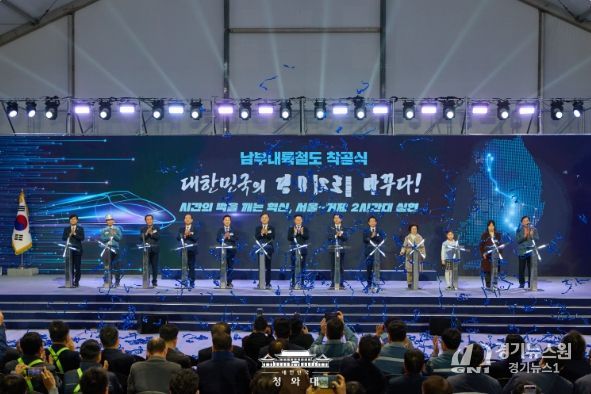 [경기뉴스원/경기뉴스1] | 이재명 대통령은 6일 "남부내륙철도는 단순히 선로 하나를 놓는 사업이 아니다"라며 "수도권에 모든 것이 집중된 '일극 체제'에서 벗어나 사람과 지역을 잇고, 기회를 연결하며, 지역의 성장동력을 만들어내는 국토 대전환의 시작"이라고 말했다.