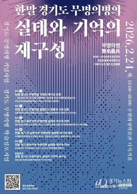 [경기뉴스원/경기뉴스1] | 경기문화재단은 경기도 무명의병 기념사업의 일환으로 제2회 학술심포지엄을 개최한다. '한말 경기도 무명의병의 실태와 기억의 재구성'이라는 주제로 2024년부터 이어온 경기도 31개 시군 무명의병 실태조사 성과를 학술적으로 공론하기 위해 마련됐다.