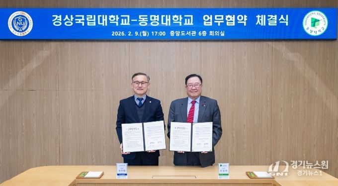 경상국립대학교는 2월 9일 오후 5시 가좌캠퍼스 중앙도서관 6층 회의실에서 동명대학교와 ‘반려동물산업 발전을 위한 상생 협력 업무협약’을 체결했다.