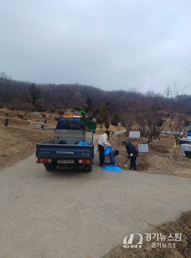 [경기뉴스원/경기뉴스1] | 광주시 오포1동은 설 명절을 앞두고 10일 성묘객 편의 제공과 쾌적한 성묘 환경 조성을 위해 공설·공동묘지 환경정비를 실시했다.