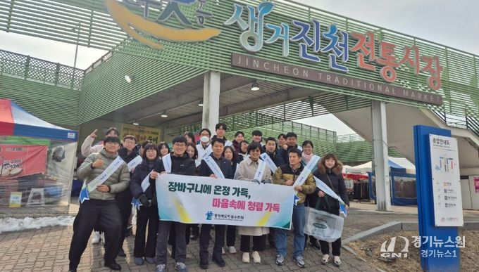 [경기뉴스원/경기뉴스1] | 충청북도교육청 직속기관 학생수련원(원장 최영미)은 10일(화) 설 명절을 맞아 생거진천 전통시장에서 지역 경제 활성화와 반부패 청렴의식 확산을 위한 설 맞이 전통시장 장보기 및 청렴 캠페인을 실시했다.
