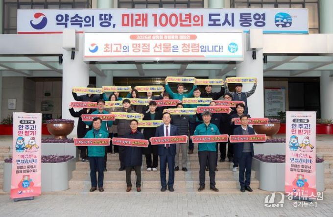 [경기뉴스원/경기뉴스1] | 통영시는 설 명절을 앞두고 공직사회의 청렴 의식을 확산하고 공직자 행동강령 준수를 당부하기 위해 지난 10일 1청사 현관에서‘2026년 설명절 대비 청렴통영 캠페인’을 실시했다.