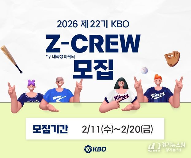 [경기뉴스원/경기뉴스1] | KBO가 2월 11일(수)부터 2026 제 22기 KBO Z-CREW(제트크루)를 모집한다.