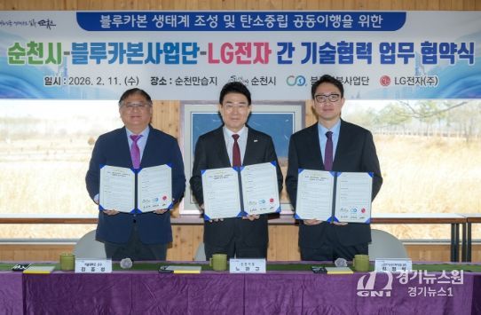 [경기뉴스원/경기뉴스1] | 순천시는 11일 순천만습지에서 서울대 블루카본사업단, LG전자(주)와 함께 '블루카본 생태계 조성 및 탄소중립 공동 이행을 위한 업무협약'을 체결했다고 밝혔다.