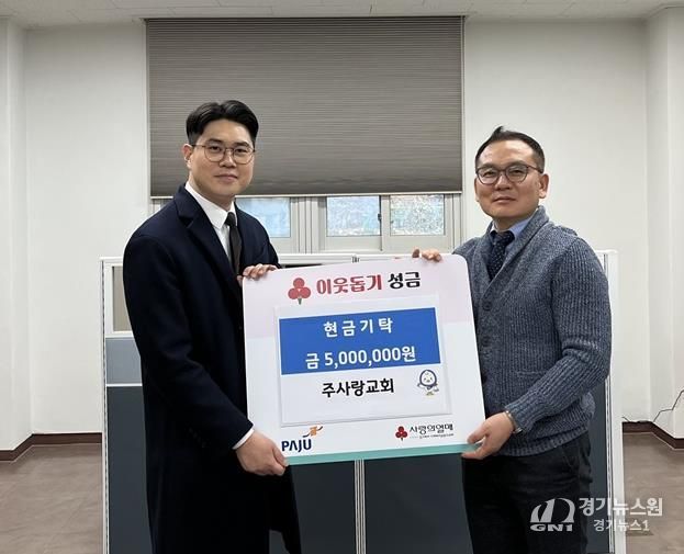 [경기뉴스원/경기뉴스1] | 설 명절을 앞둔 지난 10일, 금촌2동에 위치한 주사랑교회가 지역 내 취약계층을 위한 성금 500만 원을 금촌2동에 전달했다.