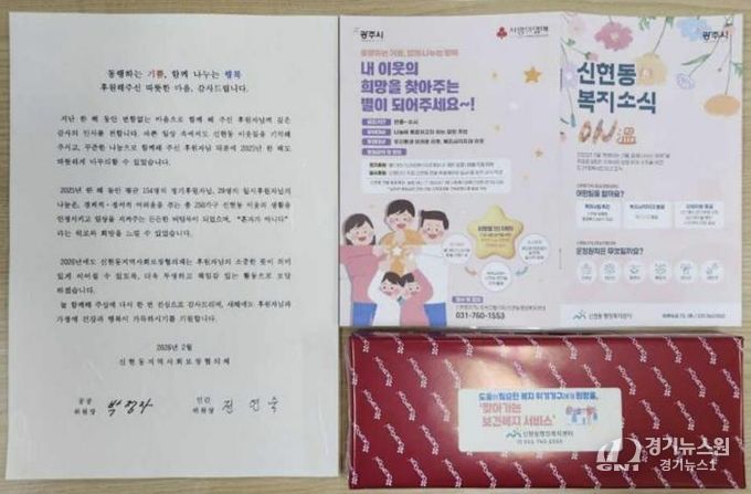 [경기뉴스원/경기뉴스1] | 광주시 신현동 지역사회보장협의체는 2025년 한 해 동안 신현동 내 어려운 이웃을 위해 성금과 물품을 기부한 후원자 183명에게 감사 서한을 발송했다고 12일 밝혔다.