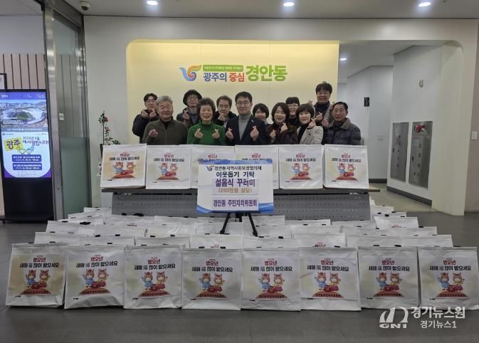 [경기뉴스원/경기뉴스1] | 광주시 경안동 주민자치위원회는 지난 11일 설 명절을 앞두고 지역 내 취약계층 가구를 위해 사골곰탕, 떡국떡, 만두로 구성된 설음식 50세트(200만 원 상당)를 경안동 지역사회보장협의체에 기탁했다.