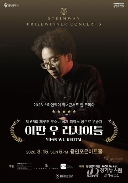 [경기뉴스원/경기뉴스1] | 용인문화재단은 오는 3월 15일 오후 5시, 용인포은아트홀에서 ‘2026 스타인웨이 위너콘서트 – 이판 우 리사이틀’을 개최한다고 밝혔다.