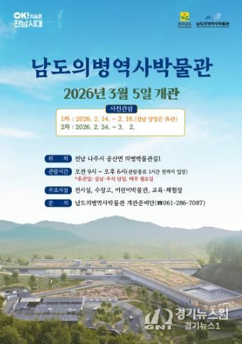 [경기뉴스원/경기뉴스1] | 전라남도는 오는 3월 5일 개관하는 남도의병역사박물관을 설 연휴 등 두 차례 시범운영으로 사전 공개해 전시·시설 전반을 최종 점검하고 관람객 의견을 반영함으로써 ‘의(義) 교육 허브’로서의 완성도를 높일 계획이다.