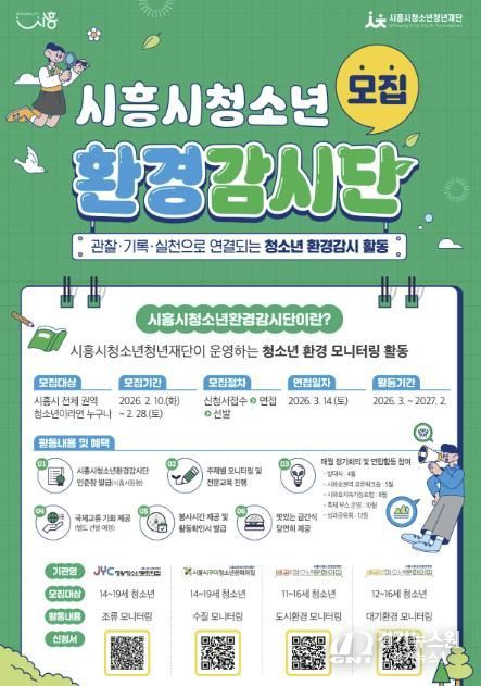 [경기뉴스원/경기뉴스1] | 시흥시청소년청년재단은 청소년이 지역 환경문제를 직접 관찰하고 기록하며, 이를 실천으로 연결하는 ‘제3기 시흥시청소년환경감시단’을 오는 2월 28일까지 모집한다.
