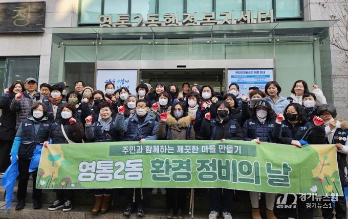 [경기뉴스원/경기뉴스1] | 수원시 영통구 영통2동은 지난 12일 행정복지센터에서 신동 원룸단지와 망포 음식특화거리에 이르기까지, 주민들의 쾌적한 설 연휴를 위해 환경정비 활동을 추진했다.