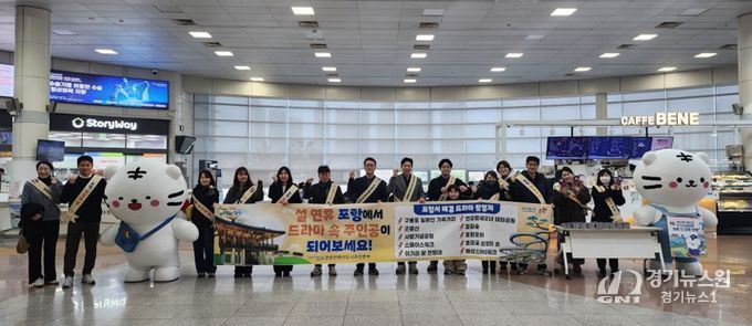 [경기뉴스원/경기뉴스1] | 포항시는 지난 14일 설 명절을 맞아 귀성객이 집중되는 KTX 포항역에서 ‘드라마 속 포항, 축제의 도시 포항’을 주제로 주요 관광지 홍보 캠페인을 전개했다.