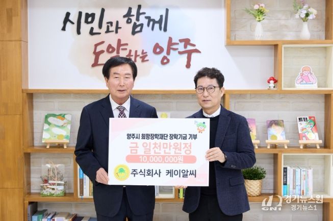 [경기뉴스원/경기뉴스1] | 주식회사 케이알씨(대표 오전식)는 최근 양주시희망장학재단(이사장 이진규)에 장학기금 1,000만 원을 기탁했다.