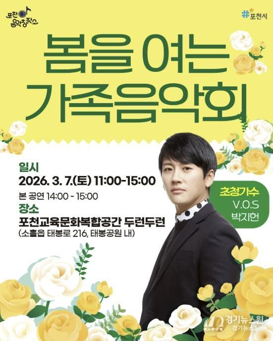 [경기뉴스원/경기뉴스1] | 포천시는 오는 3월 7일 포천시 교육문화복합공간 두런두런에서 ‘포천음악창작소, 봄을 여는 가족음악회’를 개최한다.