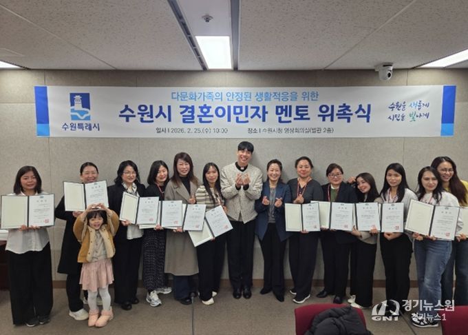 [경기뉴스원/경기뉴스1] | 수원특례시가 25일 시청 영상회의실에서 ‘2026년 결혼이민자 멘토 위촉식’을 열고 선배 이민자 멘토 15명을 위촉했다.