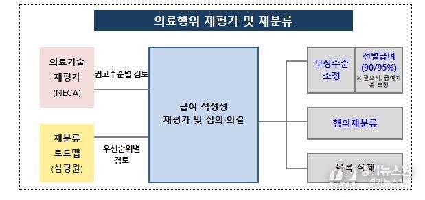 건강보험정책심의위원회 산하에 '의료행위 재평가 및 재분류 추진단'을 구성하여, 의료기술 재평가 결과의 건강보험 연계, 행위 분류체계 재정비를 총괄 검토·관리할 계획이다.