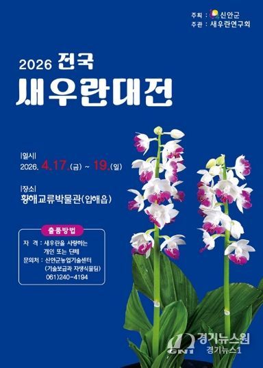 [경기뉴스원/경기뉴스1] | 신안군은 국내 최대 규모의 새우난초 전시·경연 행사인 ‘2026 전국새우란대전’을 4월에 개최하며, 전국의 새우난초 재배 농가, 애호가, 단체를 대상으로 출품 참가자를 모집한다.