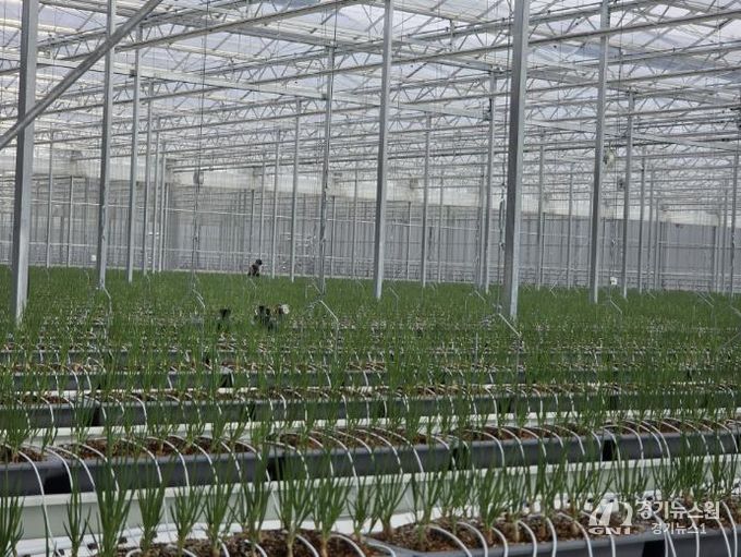 [경기뉴스원/경기뉴스1] | 봉화군은 봉성면 창평리 소재 임대형 스마트팜 A동 2구역 0.5ha온실에서 재배하고 있는 쪽파의 수확을 앞두고 있다고 3일 밝혔다.