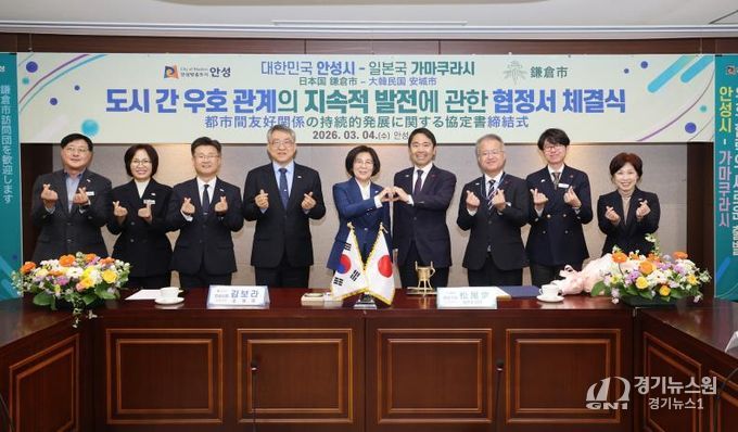 [경기뉴스원/경기뉴스1] | 안성시는 2026년 3월 4일 오전 11시 안성시청 본관 2층 상황실에서 일본 가나가와현 가마쿠라시(시장 마쓰오 다카시)와 '도시 간 우호 관계의 지속적 발전에 대한 협정'을 체결하고 양 도시 간 문화·예술 및 청소년 분야 교류를 본격 추진하기로 했다.