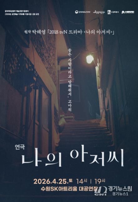 [경기뉴스원/경기뉴스1] | 수원문화재단 수원SK아트리움은 오는 4월 25일, 수많은 시청자의 인생 드라마로 손꼽히는 tvN 드라마 원작의 연극 ‘나의 아저씨’를 대공연장 무대에 올린다고 밝혔다.
