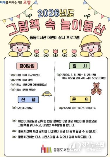 [경기뉴스원/경기뉴스1] | 고양특례시 풍동도서관은 어린이 그림책 읽어주기 상시 프로그램 ‘그림책 속 놀이동산’을 운영한다고 5일 밝혔다.