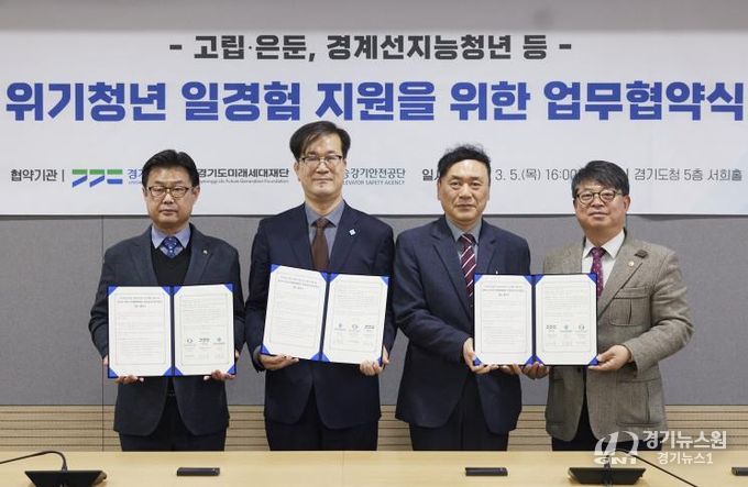 [경기뉴스원/경기뉴스1] | 경기도와 경기도미래세대재단, 한국승강기안전공단 경인지역본부는 5일 경기도청 서희홀에서 ‘위기청년 일경험 지원을 위한 업무협약’을 체결했다.