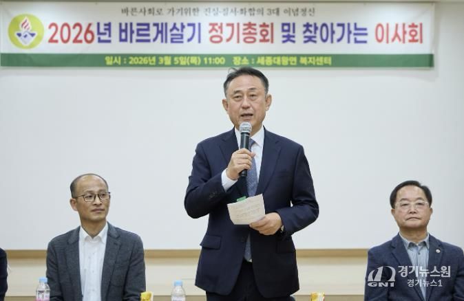 [경기뉴스원/경기뉴스1] | 지난 3월 5일 세종대왕면 복지회관에서 세종대왕면 바르게살기운동 위원회 정기총회가 개최됐다. 이날 총회에는 이충우 여주시장을 비롯해 박시선 여주시의회 의원, 김희수 세종대왕면장, 심덕보 위원장을 비롯한 바르게살기 운동 회원 등 30여 명이 참석해 단체 운영과 지역사회 발전 방안을 논의했다.