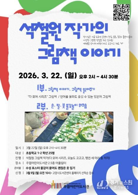 [경기뉴스원/경기뉴스1] | 고양특례시 주엽어린이도서관은 어린이들이 그림책 작가를 직접 만나 창작 이야기를 듣고 물감놀이에 참여할 수 있는 프로그램 ‘석철원 작가의 그림책 이야기’를 오는 3월 22일 운영한다.