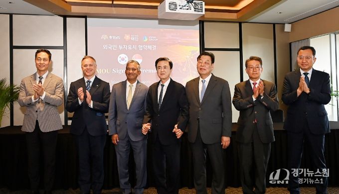 [경기뉴스원/경기뉴스1] | 태안군이 6일 싱가포르 스위소텔 더 스탬포드 호텔에서 뷔나그룹과 1조 원대 재생에너지(해상풍력) 투자협약을 맺고 친환경 에너지 산업 중심지로의 도약에 나섰다.
