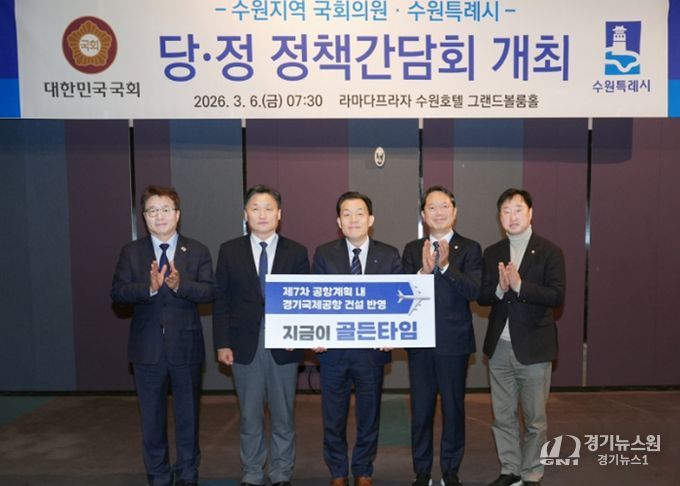[경기뉴스원/경기뉴스1] | 이재준 수원특례시장은 6일 라마다프라자 수원호텔에서 열린 지역 국회의원들과 당·정 정책간담회에서 “제7차 공항개발 종합계획에 ‘경기국제공항’ 건설 내용이 반영될 수 있도록, 경기도와 협의해 달라”고 요청했다.