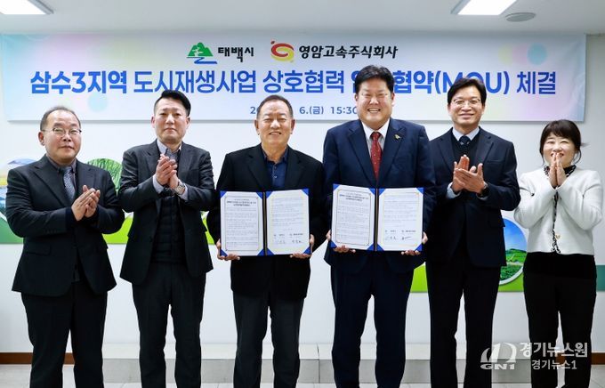 [경기뉴스원/경기뉴스1] | 태백시는 3월 6일 오후 3시 30분 시청 소회의실에서 영암고속 주식회사와 ‘삼수3지역 도시재생사업 추진을 위한 업무협약’을 체결했다고 밝혔다.