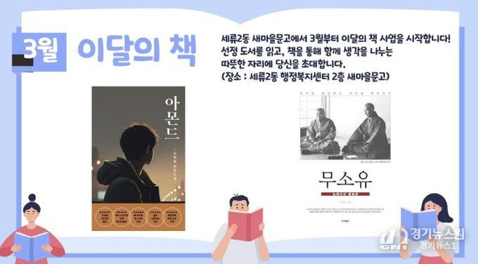 [경기뉴스원/경기뉴스1] | 권선구 세류2동 행정복지센터는 3월부터 주민 독서문화 활성화를 위한 ‘이달의 책, 함께하세류!’ 사업을 운영하고 있다.