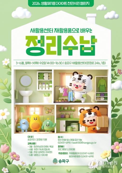 [경기뉴스원/경기뉴스1] | 서울 송파구가 재활용품을 활용해 생활 쓰레기를 줄이고 집 안도 깔끔하게 정리하는 새로운 강좌를 선보인다.