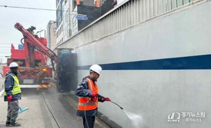 [경기뉴스원/경기뉴스1] | 의정부시는 봄을 맞아 겨울철 강설에 따른 제설작업과 미세먼지 등으로 오염된 도로시설물을 정비하고, 쾌적하고 깨끗한 도로 환경을 조성하기 위해 주요 도로변 중앙분리대, 지하차도, 육교 등 도로시설물에 대한 대청소를 실시한다.