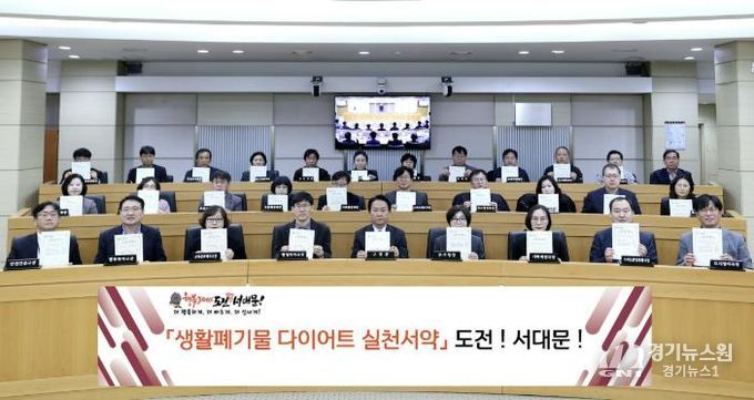 [경기뉴스원/경기뉴스1] | 서대문구가 이달 12일 구청 대회의실에서 간부 직원들이 참여한 가운데 ‘생활폐기물 다이어트 실천 서약 챌린지’를 진행했다.