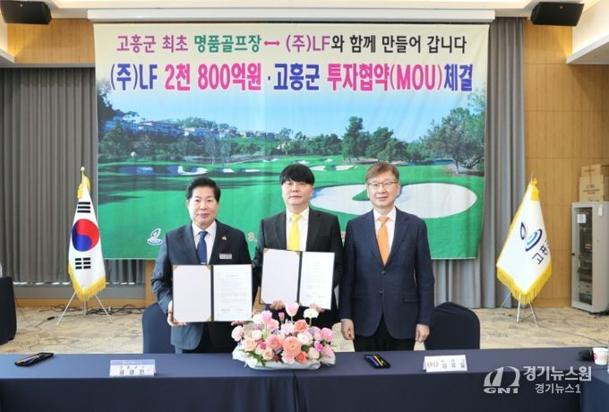 [경기뉴스원/경기뉴스1] | 고흥군은 12일 고흥 썬밸리리조트에서 ㈜LF와 ‘고흥 신곡리 골프 · 리조트 조성사업’의 원활한 추진을 위한 투자협약(MOU)을 체결하고, 고흥군 최초의 골프장 조성사업을 본격 추진한다고 밝혔다.