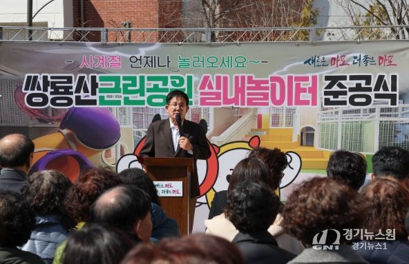 [경기뉴스원/경기뉴스1] | 박강수 마포구청장은 3월 13일 오후 1시 30분, 쌍룡산근린공원(염리동 532-5)에서 열린 ‘쌍룡산근린공원 실내놀이터 조성사업 준공식’에 참석해 어린이와 가족을 위한 새로운 놀이공간의 조성을 축하했다.