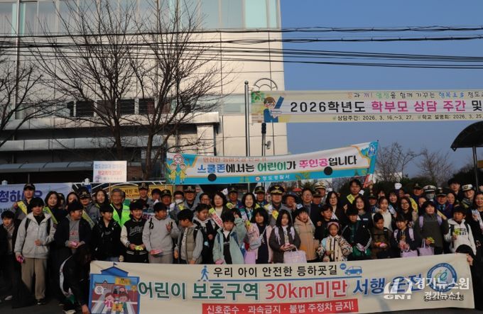 [경기뉴스원/경기뉴스1] | 경상북도청도교육지원청은 3월 17일 청도초등학교 정문에서 ‘아이 먼저! 등굣길 교통안전 캠페인’을 실시했다.