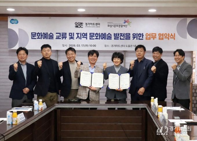 [경기뉴스원/경기뉴스1] | 화성시문화관광재단은 3월 17일 경기아트센터에서 경기 아트센터와 문화예술 교류 및 협력 강화를 위한 업무협약(MOU)을 체결했다. 이번 협약은 양 기관이 문화예술 분야에서 상호 협력을 강화하고 지역 문화예술 발전과 시민들의 문화 향유 기회 확대를 위해 추진됐다. 양 기관은 상호 협력을 바탕으로 공연과 문화예술 프로그램을 공동 기획하고 다양한 문화예술 콘텐츠 교류를 통해 지역 문화예술 활성화를 도모할 계획이다.