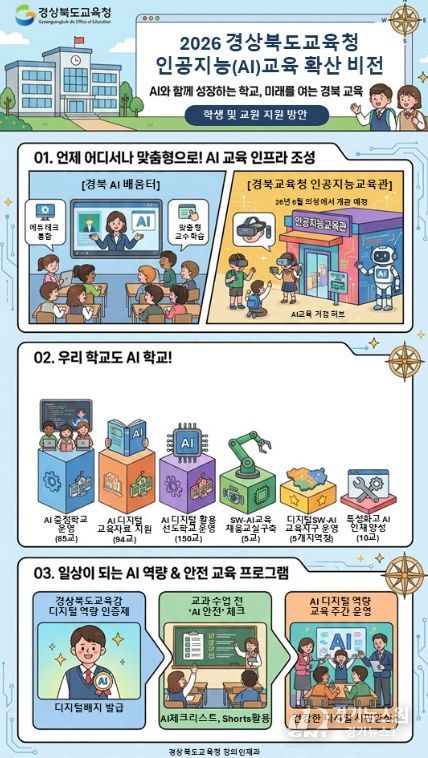 [경기뉴스원/경기뉴스1] | 경북교육청은 ‘AI와 동행하는 따뜻한 경북교육’을 비전으로 다가오는 인공지능 시대를 주도할 미래 인재 양성을 위해 ‘2026 AI(인공지능)교육 종합계획’을 수립해 본격 추진한다고 18일 밝혔다.