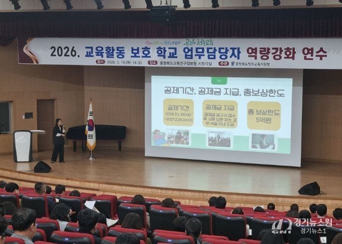 [경기뉴스원/경기뉴스1] | 청주교육지원청은 3월 19일 충청북도교육연구정보원 시청각실에서 청주 지역 유·초·중·고·특수학교 등 교육활동보호 업무담당 교원 230여 명을 대상으로 '2026년 교육활동보호 학교업무담당자 역량강화 연수'를 실시했다.